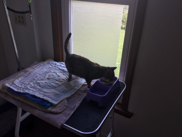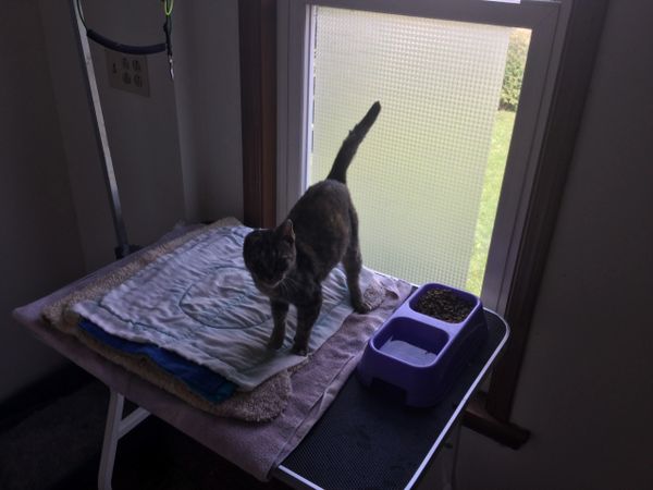 Luna is a rescue cat we found on our property she was skinny and seemed very tired and we had to use a trap to get her. She was scared at first but seemed to warm up to us. seemed she is missing one of her ears and it was totally healed up when we found her. She will be placed up for adoption after she has been vetted. If interested please fill an application out.